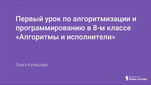 Одной из базовых тем информатики является тема «Основы алгоритмизации и программирования», которую согласно ФГОС ООО учащиеся начинают изучать в 8-м классе. В данной статье представлена разработка первого урока по данной теме с приложениями (презентация, интерактивные и тестовые задания, видео).