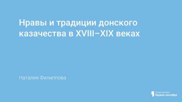 Урок посвящен изучению нравов и традиций казачества, сложившихся в XVIII-XIX вв. Найдена информация о старинных обычаях, поверьях, правилах, существовавших в казачьей среде, целью которых является воспитание достойных воинов – защитников Родины.