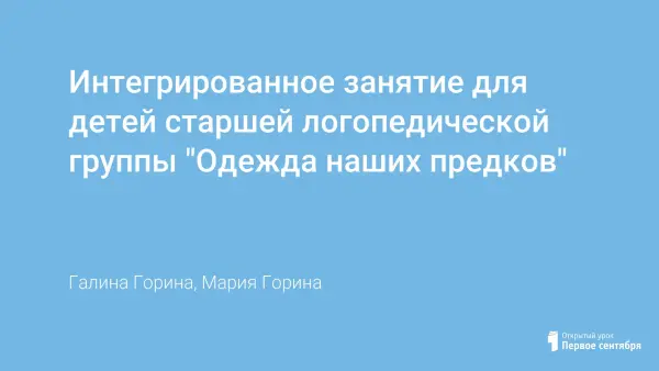 Интегрированное занятие для детей старшей логопедической группы "Одежда наших предков"
