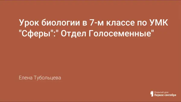 Первый из трёх уроков, отведенных на изучение голосеменных растений. Урок наглядно демонстрирует возможности УМК «Сферы» для реализации деятельностного подхода в обучении, применения ИКТ.