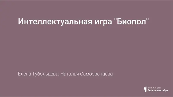 Биопол (биологическая полемика) – универсальная интеллектуальная игра, которая может использоваться при изучении любого из курсов биологии с 6-й по 11-й классы. Она представляет собой комплекс деятельностных блоков, с определенными типами заданий. Содержание заданий каждого блока разрабатывается в соответствии с темой игры. Игра может быть проведена по одной или нескольким темам, в индивидуальной или групповой форме, на обобщающем уроке или в качестве внеклассного мероприятия.