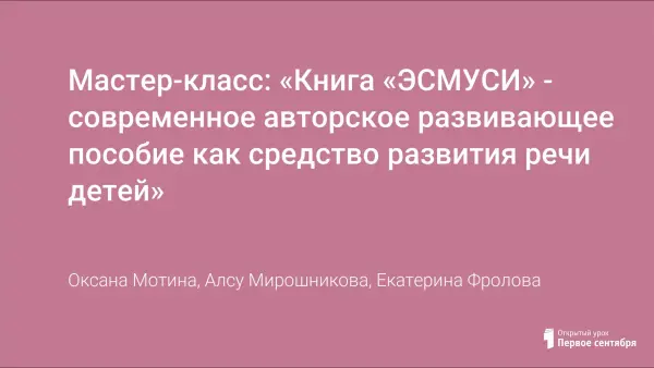 Цель мастер-класса: ознакомление педагогов с авторским интерактивным пособием – книгой «ЭСМУСИ», целью которого является развитие всех компонентов речи детей, стимулирование их познавательной и исследовательской активности.