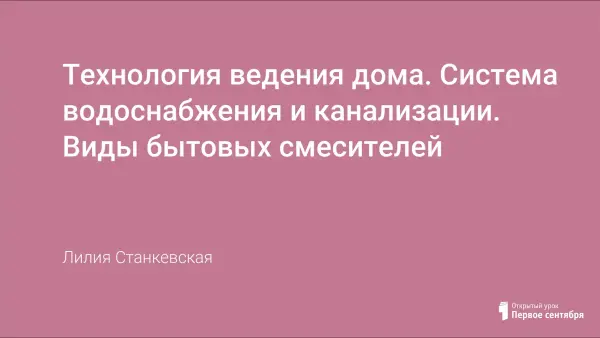 Урок знакомит учащихся со строительным делом и основными составляющими систем водоснабжения и канализации современной квартиры.