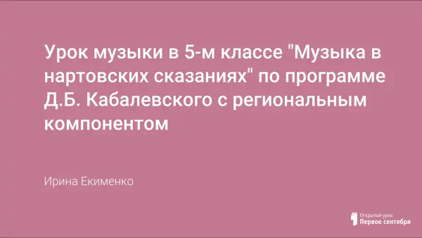 Урок музыки в 5-м классе на тему «Музыка народов Кавказа» разработан в соответствии с программой Д.Б. Кабалевского с региональным компонентом. На уроке, на примере наследия осетин «Сказания о нартах», учащиеся находят легенды, в которых музыка и игра на музыкальных инструментах сыграла определяющую роль в жизни героев эпоса.
