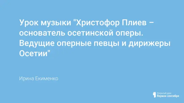 Урок призван узнать историю зарождения оперного искусства в Северной Осетии. Он знакомит с именами известных осетинских композиторов, исполнителей, дирижеров, прививает обучающимся интерес к оперному жанру музыки и знакомит с творчеством Христофора Сослановича Плиева.