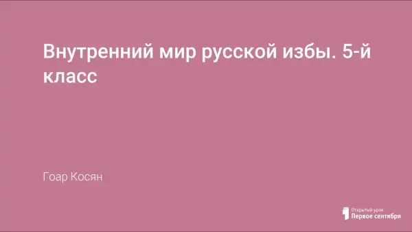 Урок изобразительного искусства знакомит учащихся с внутренним миром русской избы. Цель урока: развитие творческой и познавательной активности; формирование практических умений работать в малом коллективе (группе); формирование понятия о единстве пользы и красоты в интерьере жилища и предметах народного быта; воспитание любви к Родине и народной культуре.
