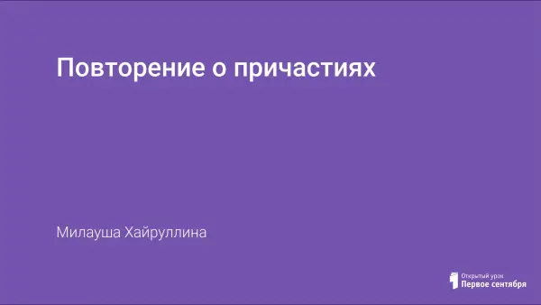 Цели урока: научить учащихся отличать причастия от имён прилагательных; выработать осознанный навык правильного образования причастий; обогатить речь учащихся причастиями, научив активно пользоваться ими в разных типах и стилях высказываний.