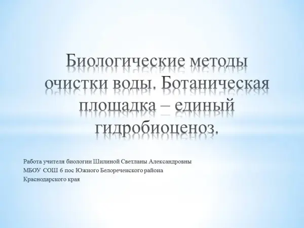 Актуальность работы заключается в воспитании патриотизма, любви к малой Родине через изучение окружающей среды. Методологической основой данной работы является объективность, использование биолого-сравнительного и биолого-системного метода. Практическая значимость работы в том, что всем нам нужна чистая и вкусная вода, а бизнесмены и предприниматели думают не о нашем с вами здоровье, а о своем кошельке, засоряя или не строя элементарно простые по своей сути сооружения, которые мы вам предлагаем.