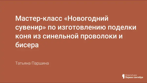 Цели занятия: формирование представления о домашних животных - лошадях и их значимости в жизни человека; ввести алгоритм выполнения изделия в технике работы с проволокой; учить использовать приобретенные знания и умения в практической деятельности.