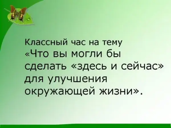 Классный час «Что вы можете сделать "здесь" и "сейчас" для улучшения окружающей жизни». 4-й класс