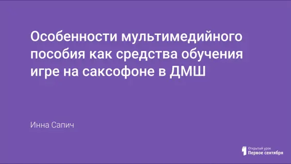 Использование новых мультимедийных технологий при обучении игре на саксофоне младших школьников по традиционным методикам, делает процесс обучения ярче, интереснее и увлекательнее для ребенка, что способствует развитию интереса у обучаемого не только к саксофону, но и вообще к современной музыкальной культуре.