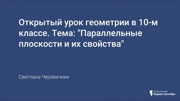 Открытый урок геометрии в 10-м классе посвящен обоснованию свойств параллельных плоскостей и формированию навыка решения простейших задач на построение сечений.