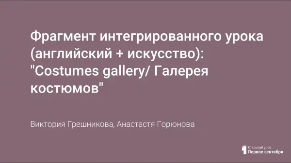 Фрагмент интегрированного урока английского языка и искусства. Урок для учащихся 8-го класса по программе «Английский в фокусе». Главная образовательная цель урока - развивать коммуникативные умения обучающихся по теме «Национальные костюмы разных стран». Урок соответствует требованиям ФГОС.