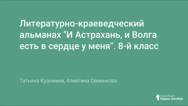 Литературно-краеведческий альманах "И Астрахань, и Волга есть в сердце у меня". 8-й класс