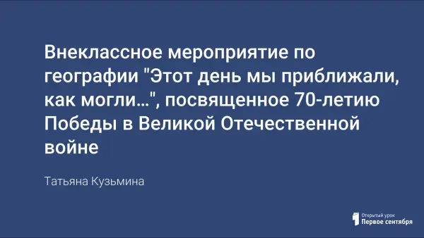 Материал внеклассного мероприятия по географии показывает учащимся влияние природных и географических условий страны на ход военных действий в Великой Отечественной войне. А также знакомит с представителями различных географических профессий и рассказывает об их вкладе в приближение победы.
