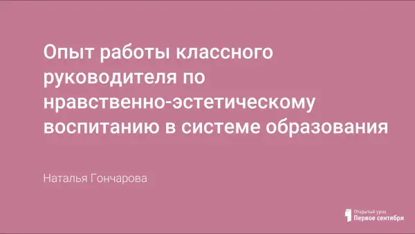 Показаны различные направления работы с учетом многонациональной, многоконфессиональной структуры нашей страны и учебных классов, в которых проводится работа по нравственному и эстетическому воспитанию. Приводятся многочисленные примеры практической работы с учащимися, когда выявляются творческая одаренность детей, их симпатии, желания проявить себя. Именно в классе реализуется проблема досуга, осуществляется сплочение коллектива, формируется соответствующая атмосфера для эстетического и нравственного воспитания.