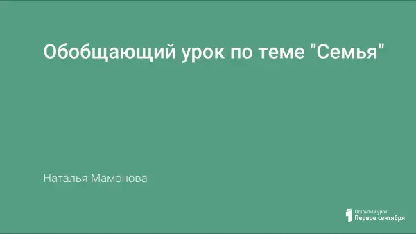 На уроке учащиеся закрепляют знания по теме «Семья», формируют и развивают коммуникативные умения на основе языковых, социокультурных знаний, навыков: умения принимать на слух и понимать краткие сообщения, умения письменно оформлять несложную информацию, умения делать краткие сообщения на заданную тему.
