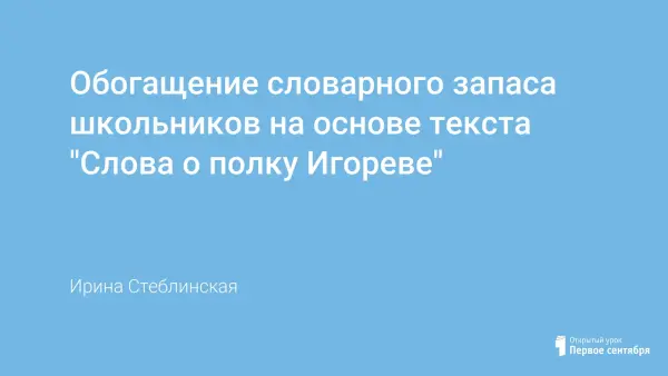 Стратегическим направлением в преподавании русского языка является обогащение словарного запаса учащихся. Должным образом организовать словарную работу удастся, используя в качестве дидактического материала «Слово о полку Игореве». Разработанная система упражнений на основе материала текста памятника позволит учащимся пополнить и активизировать словарный запас, что актуально для выпускников 9-го класса, которым предстоит в ходе ГИА продемонстрировать свою языковую компетентность.