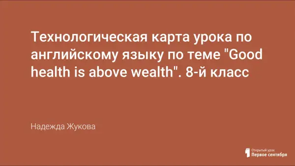 Технологическая карта урока по английскому языку по теме "Good health is above wealth". 8-й класс