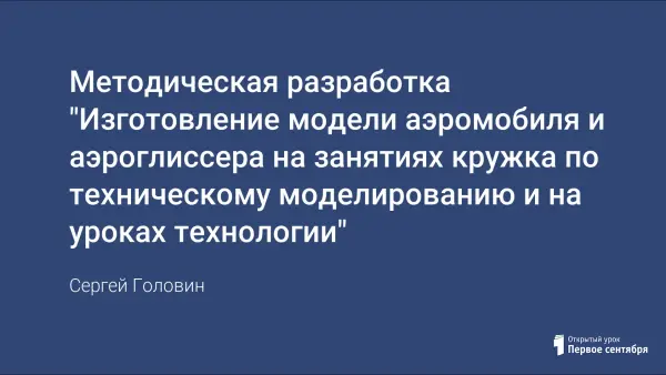 В методической разработке показаны этапы работы по изготовлению модели аэромобиля и аэроглиссера. Также в ней рассказывается где, на каких уроках, кружковых занятиях можно ее использовать. Как методическая разработка может помочь педагогу в его работе по достижению хороших результатов, а также какие знания, умения и навыки могут получить дети при изготовлении данной модели. Данный опыт будет полезен учителям начальных классов, а также всем учителям технологии.