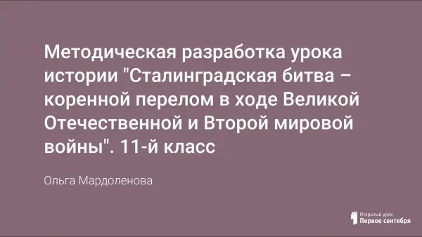 Цель урока: осмысление исторического значения Сталинградской битвы как переломного момента в ходе Великой Отечественной и Второй мировой войны, воспитание ценностного отношения к историческому прошлому своей страны.
