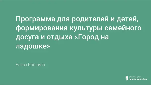 Программа ориентирована на детей 3–18 лет и родителей, чей совместный досуг характеризуется низким уровнем знаний. В программу включены мероприятия с новыми формами работы с семьей.