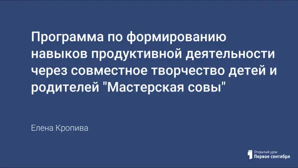 Программа рассчитана на детей в возрасте от 3 до 18 лет и их родителей и направлена на формирование и развитие навыков продуктивной деятельности детей и родителей через совместное творчество. Программа включает 14 занятий, в процессе которых предусмотрено выполнение практических работ, которые помогают применять на практике полученные знания по изготовлению изделий из различных материалов, дают возможность детям и родителям сделать на тот или иной праздник подарок близким своими руками.