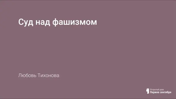 Представлен сценария урока, посвященного Великой Отечественной войне. Урок представлен в форме урока-суда, на котором слушается дело по обвинению фашизма в преступлениях против человечества, в общем, и против русского народа в частности.