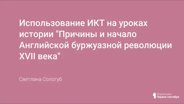 Данная тема имеет принципиальное значение для понимания школьниками процесса формирования индустриального общества. На примере предлагаемого материала учащиеся впервые знакомятся с таким понятием, как буржуазная революция и ее характеристика. Согласно программе в ходе изучения данной темы школьники должны усвоить, причины, движущие силы, характер, ход и итоги Английской буржуазной революции XVII века, сделать вывод о ее историческом значении. В соответствии с обозначенной темой, на уроке рассматриваются события начала революции до установления республики в Англии.
