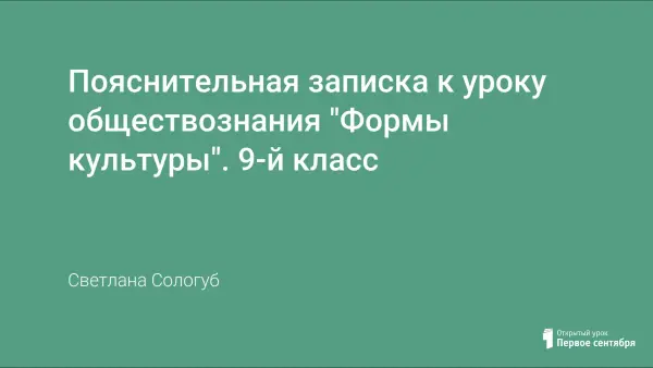 Уроку предшествовала долгая подготовительная работа, в ходе которой была подготовлена анкета "Мое свободное время" и проведено анкетирование среди старшеклассников школы. В результате занятия учащиеся смогли узнать, какие формы культуры существуют, и сравнивать их; давать определение таким понятиям, как "элитарная", "народная" и "массовая культура"; определить, к какому типу культуры относятся произведения; выступать публично в ходе пресс-конференции; проводить анкетирование и анализ результатов.