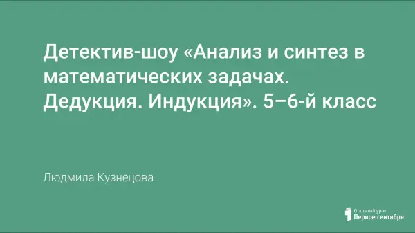 Урок-игра знакомит с индукцией и дедукцией как методами познания (в более широком смысле) и анализом и синтезом как методами решения математических задач (в более узком). На уроке две команды решают задачи и одновременно раскрывают тайну Мистера «Х», а также разыгрывают шуточную детективную сценку.