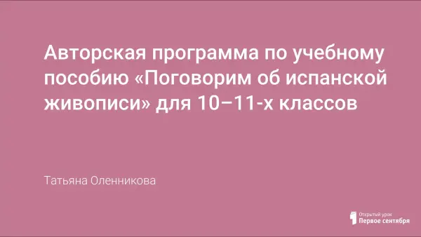 Основная цель программы: поиск нового содержания и использование современных технологий в обучении путем деятельного приобщения учащихся к испанской культуре. Подобных учебных пособий на испанском языке, содержанием которых являлась бы одна тема, в нашем случае живопись, нет, поэтому мы можем говорить не только об актуальности, но и новизне предлагаемого курса испанского языка.