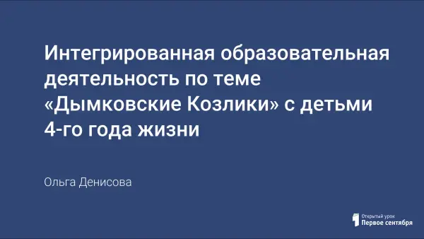 Представлена интегрированная образовательная деятельность по теме «Дымковские Козлики» с детьми 4-го года жизни, главная цель: продолжать знакомить детей с русской народной Дымковской игрушкой. Развитие социально-коммуникативных навыков. Я посчитала, что интегрирование образовательных областей может сделать это наиболее эффективно.