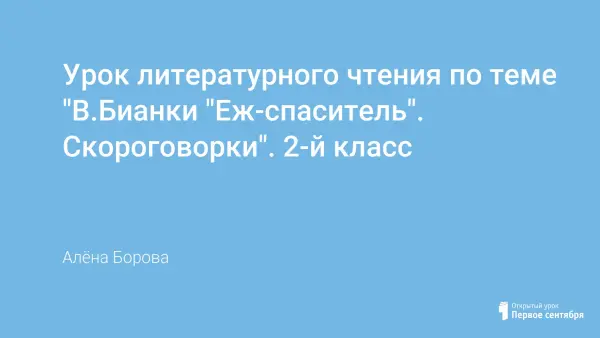 Цели урока: создать условия для ознакомления с творчеством В.В.Бианки, анализа поведения героев в изучаемом произведении, их чувств, выяснения причин поступков, раскрытия замысла автора; создать условия для развития навыков чтения, умения ориентироваться в тексте, пользоваться справочной литературой; формировать навыки учебной деятельности учащихся; воспитывать интерес к чтению, чувство сопереживания, доброе отношение к животным.