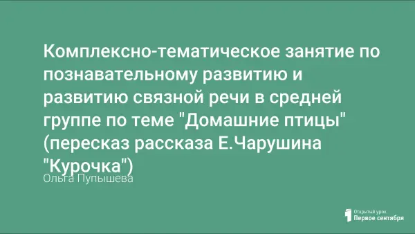 Для решения задач по развитию речи наиболее подходят комплексно-тематические занятия, где и могут быть включены и беседы, и пальчиковые гимнастики, и чтение художественной литературы, и рассматривание картин, и другие виды детской деятельности. Речь выступает коммуникативной, обучающей, воспитывающей основой, и от качества речи зависит дальнейшее обучение ребенка в школе. Цель занятия – развитие связной речи детей.