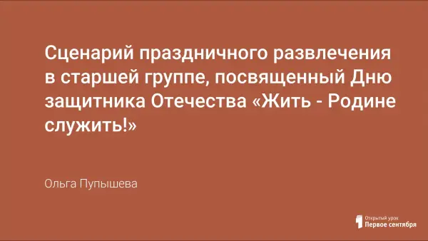 Праздничное развлечение, посвященное дню защитника Отечества «Жить - Родине служить» стало частью моей работы по формированию патриотических чувств у дошкольников через ознакомление с народами России (казаками). Цель мероприятия: воспитание патриотических чувств у старших дошкольников через ознакомление с народами России и их традициями.