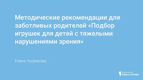 Игрушка для слепого ребенка « одно из средств познания окружающего мира. При подборе игрушек для слепых детей должны предъявляться особые требования. В статье в помощь родителям, воспитывающим детей с тяжелыми нарушениями зрения представлены методические рекомендации к подбору игрушек и общие требования к игре.