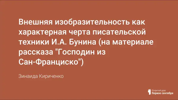 Данный интегрированный урок (литературы и изобразительного искусства) рассчитан на учащихся 11-го класса, предполагает глубокое изучение языка текста программного произведения И.А. Бунина, знакомство с шедеврами таких направлений живописи, как романтизм и импрессионизм, сопоставление литературных и живописных образов.
