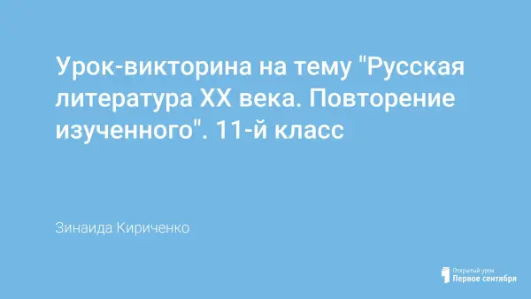 Занимательная форма урока вызывает активность учащихся, позволяет охватить большой объем учебного материала и контролировать усвоение темы. Разнообразные задания викторины повторяют литературоведческие термины, факты биографии поэтов и писателей, воспроизводят отрывки произведений классиков русской литературы XX века. Урок целесообразно проводить в конце учебного года.