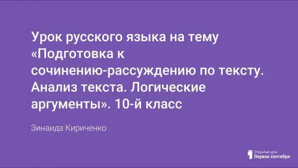 Урок русского языка учит работать с текстом. Учащиеся выявляют тему, идею текста, формулируют проблему, подбирают аргументы авторской позиции и доказательства для обоснования собственной точки зрения; узнают три варианта логических аргументов и пишут логическое доказательство сформулированного тезиса.