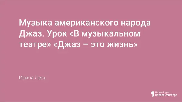 Цель урока: сформировать представление у учащихся о многогранности творчества американской культуры, познакомить с афро-американским фольклором «Джазом» - основой американской оперы, используя популярные джазовые хитами, развивать интерес к этой музыке.