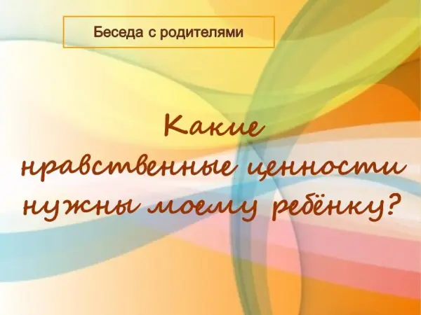 «Какие нравственные ценности нужны моему ребёнку?» Мне, кажется, что если такая тема интересует общественность, то наше государство может гордиться тем, что воспитало достойных родителей, которым не безразлична жизнь своего ребёнка, да и нового поколения в целом.
