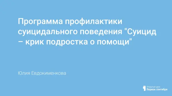 Данная программа предназначена для организации профилактической и коррекционной работы по предотвращению суицидальных попыток среди учащихся разных возрастных групп в общеобразовательном учреждении. Цель программы: профилактика суицидов и суицидальных попыток среди несовершеннолетних.