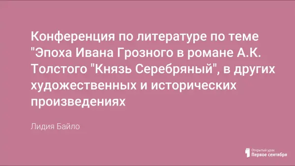 Цель конференции: помочь учащимся понять смысл слова "эпоха" и особенность эпохи царя Ивана Грозного; расширить их лексикон в работе над устаревшей лексикой из прочитанных произведений; обратить особое внимание не только на минусы, но и на плюсы, которые дала России эта эпоха.