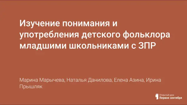 Авторы провели сравнительный анализ особенностей понимания и употребления произведений детского фольклора у учащихся первых классов с задержкой психического развития и нормативно развивающихся сверстников. Обоснована необходимость коррекционно-логопедической работы с младшими школьниками с ЗПР по развитию понимания и употребления фольклора.
