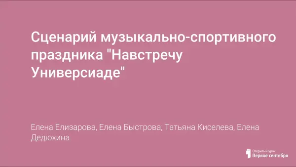 Праздник проводится с детьми старшего дошкольного возраста, с приглашением гостей – спортсменов и родителями. Организация праздника предусматривает предварительную работу педагогов групп, музыкальных руководителей и инструктора по физической культуре с детьми и их родителями. В игровой форме дети знакомятся с городом Казань и посещают виртуальную экскурсию по спортивным объектам Универсиады. Праздник состоит из музыкальных композиций, танцев, спортивных игр, эстафет и показательных выступлений.