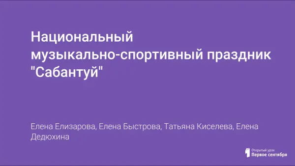 Праздник «Сабантуй» проводится с детьми старшего дошкольного возраста с приглашением гостей – спортсменов и родителей. Праздник проводится в начале лета на игровой площадке и состоит из национальных стихов, песен, танцев, народных игр и конкурсов, эстафет и показательных выступлений. Дети показывают свою физическую подготовленность, убеждаются в необходимости занятий физическими упражнениями, приобщаются к национальной культуре.