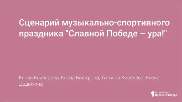 Сценарий праздника разработан для детей старшего дошкольного возраста, с приглашением гостей – ветеранов, тружеников тыла и детей Великой Отечественной войны, а также родителей воспитанников. Организация праздника предусматривает предварительную работу педагогов групп, музыкальных руководителей и инструктора по физической культуре с детьми и их родителями. Готовятся музыкальные номера, сценки, дети учат стихи и песни. Воспитатели проводят с детьми беседы о войне, проводится конкурс рисунков.