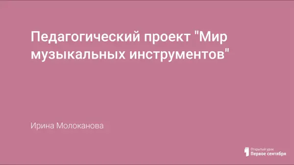Как сделать так, чтобы дети взглянули на музыкальные инструменты по-новому? Ведь у каждого из них своя интересная история! Выбранная мной тема «Мир музыкальных инструментов» позволит решить эту проблему. Разработка педагогического проекта будет интересна музыкальным руководителям дошкольных образовательных учреждений, учителям музыки общеобразовательных школ.