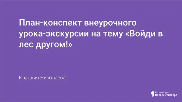 План-конспект внеурочного урока-экскурсии на тему «Войди в лес другом!»